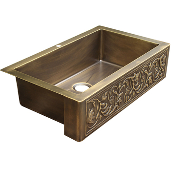 Handmade Custom Antique Copper Hammered Farmhouse Sink Embossed Artisan Apron Pattern Single Bowl Faucet One Hole Kitchen Basin